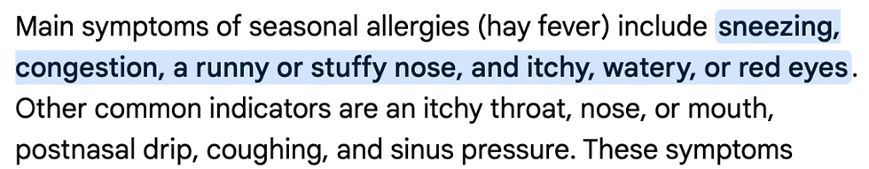 Seasonal allergies are a misdirected, overreactive immune response to something harmless (like pollen). Instead of tolerating it, your body treats it like a threat.